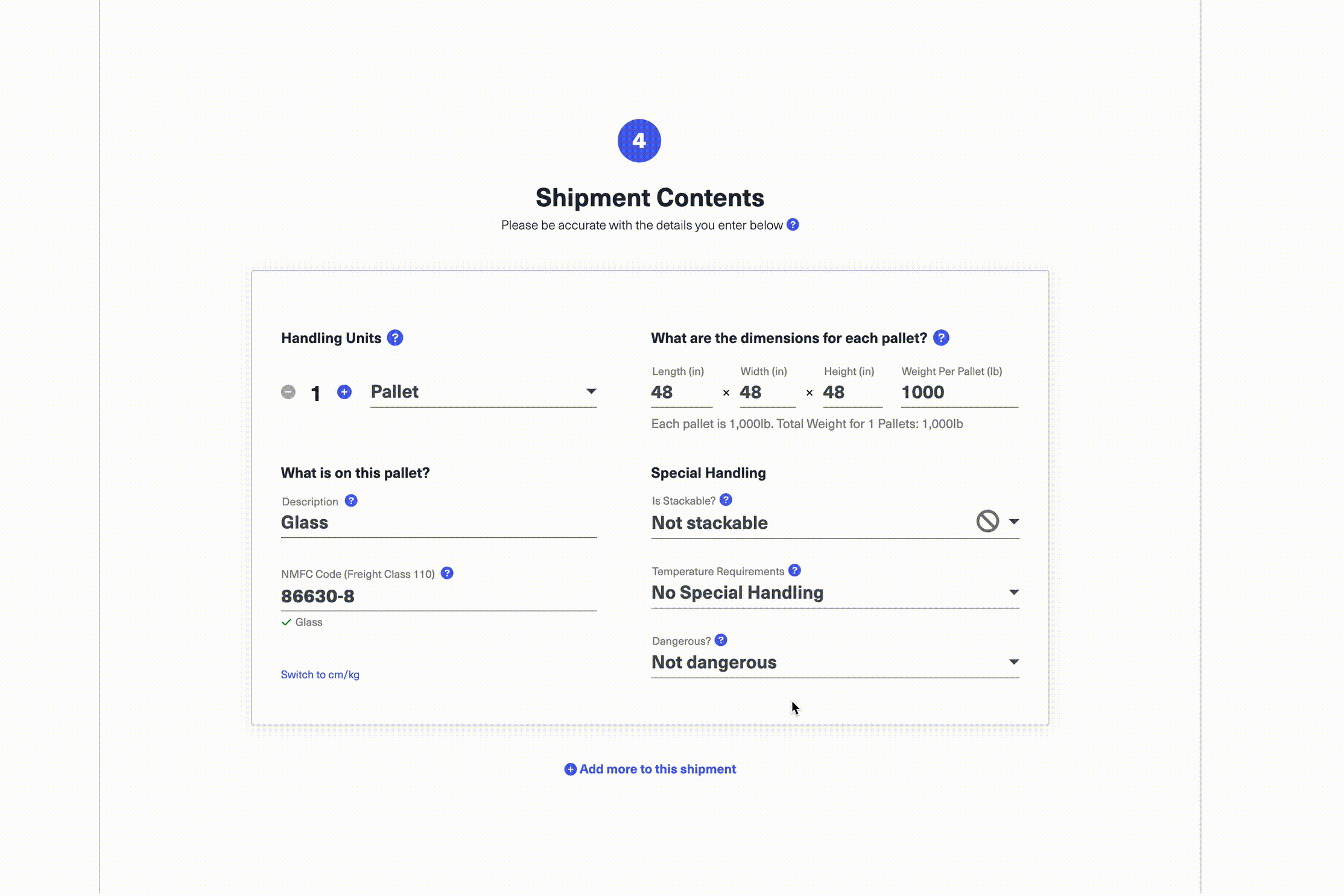 Every type of commodity in this system has an associated UN number, a Hazard Classification, and a Packing Group. For example, something poisonous would be a different hazard class to something explosive. The packing group allows the carrier to know what can be loaded together. FreightSimple helps you find each one of these criteria, but if you are unsure, open a live chat or email support@freightsimple.com and our team will be happy to help!