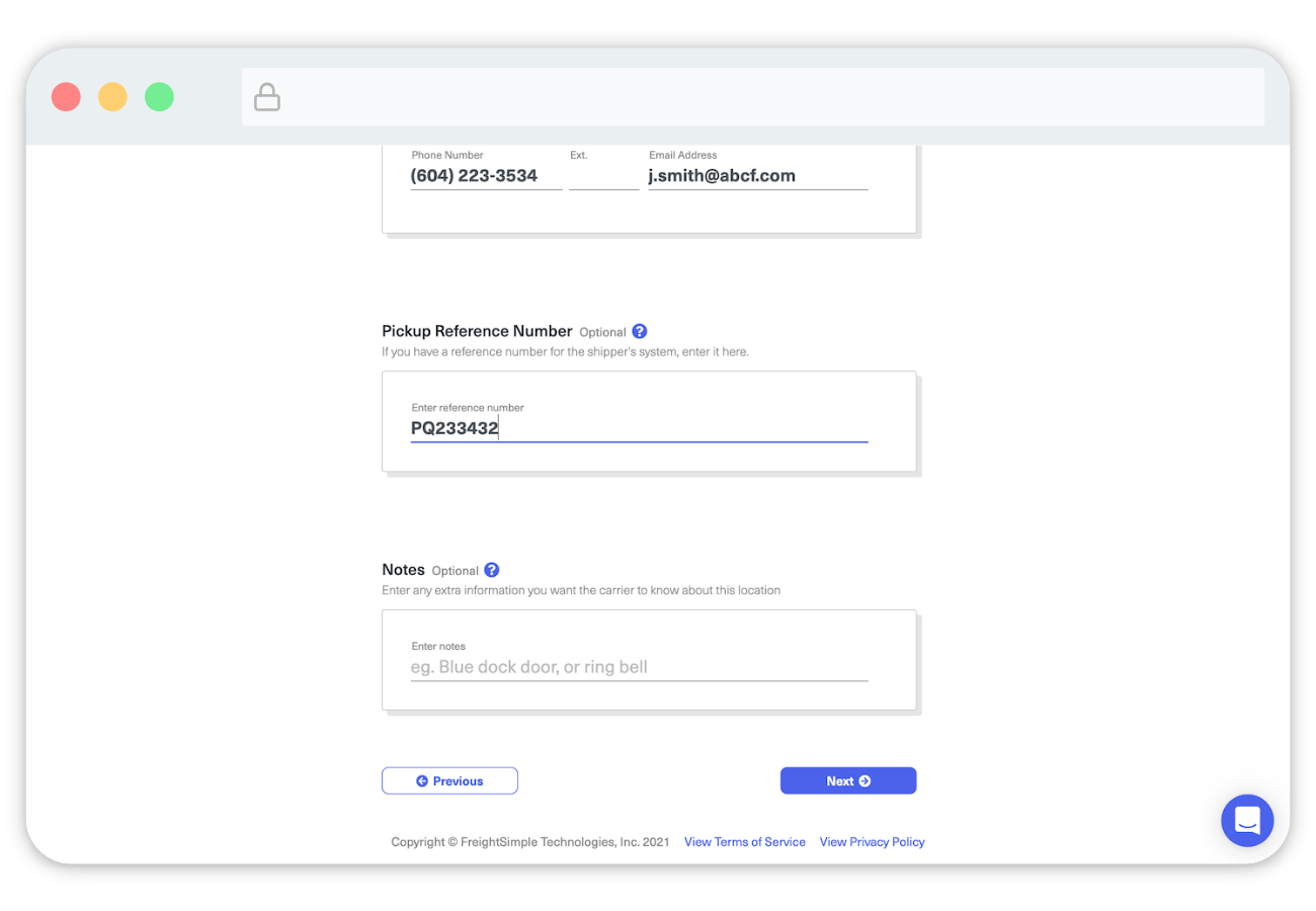 You can optionally add a pickup and delivery reference number. We highly recommend adding these if you have them.