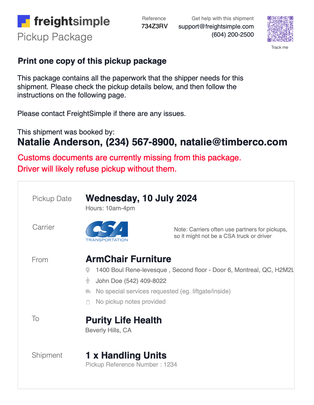 The Pickup Package is generated every time you book a shipment, and contains all of the paperwork that you as the shipper need for a successful pickup. The Pickup Package will contain your Bill of Lading and Packaging Labels (automatically generated for you), and if you've booked a cross-border shipment and have uploaded your Customs Documents, they will also be automatically added to the Pickup Package.