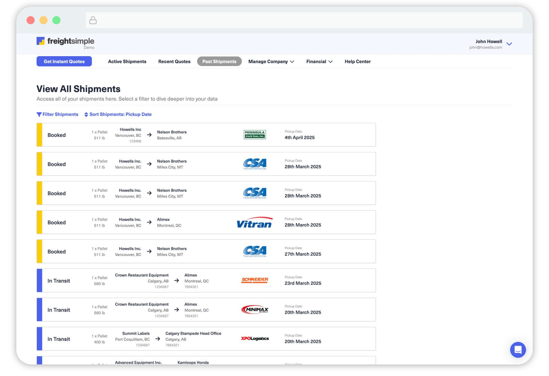 Once you're in, click on the "Past Shipments" tab in the top menu.