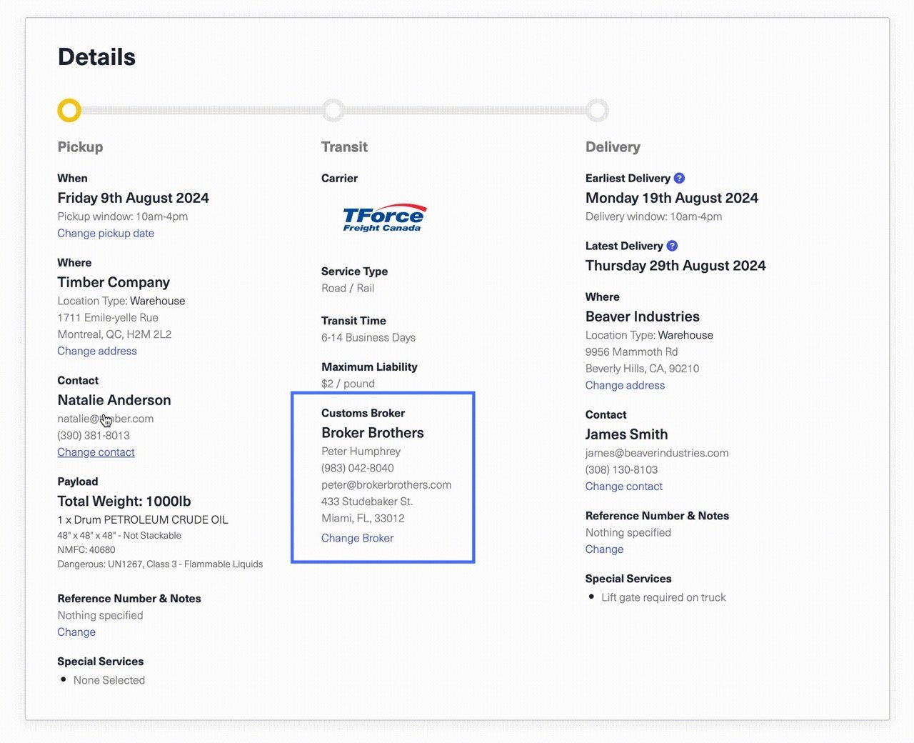 If you need to update your customs broker information after you've booked a shipment, you can easily make changes within the FreightSimple platform. Follow the steps below to modify your broker details: