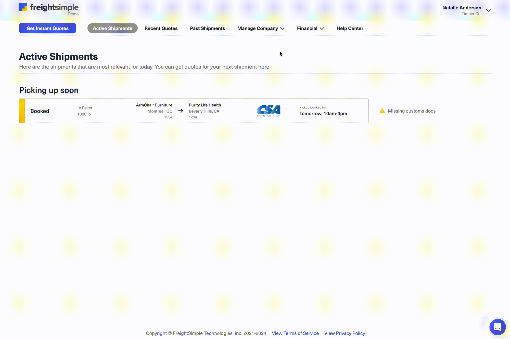 Log in to your FreightSimple account.