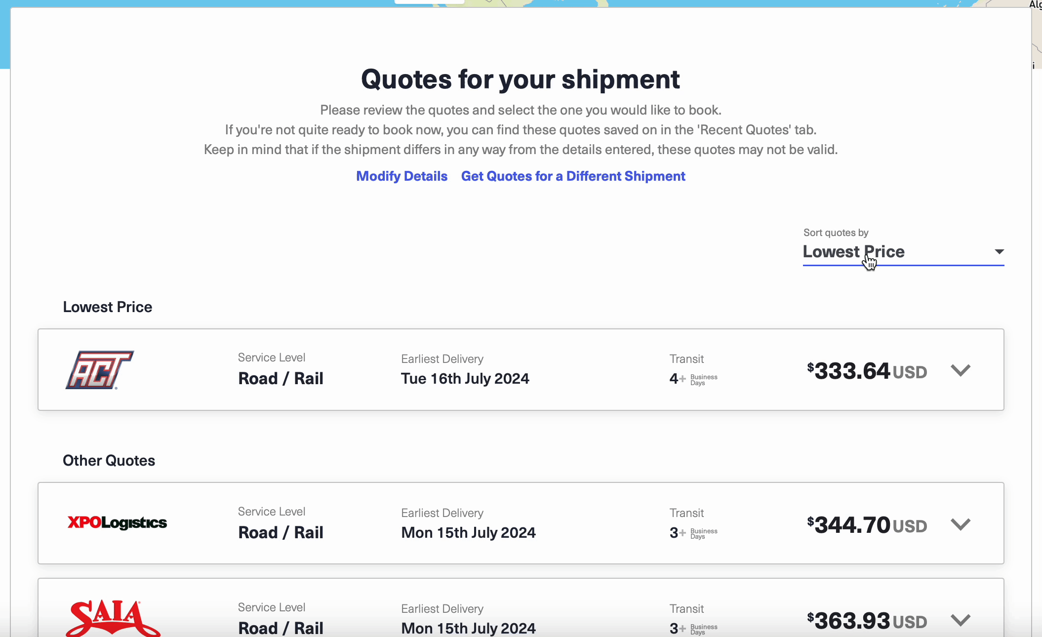 You can also filter your quotes view by fastest transit time when quoting. This will allow you to see the fastest predicted transit options at the top of the page.