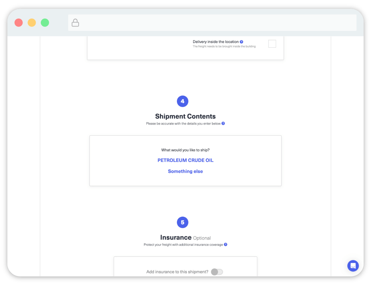 Now, when entering details for a quote, you will be prompted with a choice of your saved commodities, or to enter new details instead.