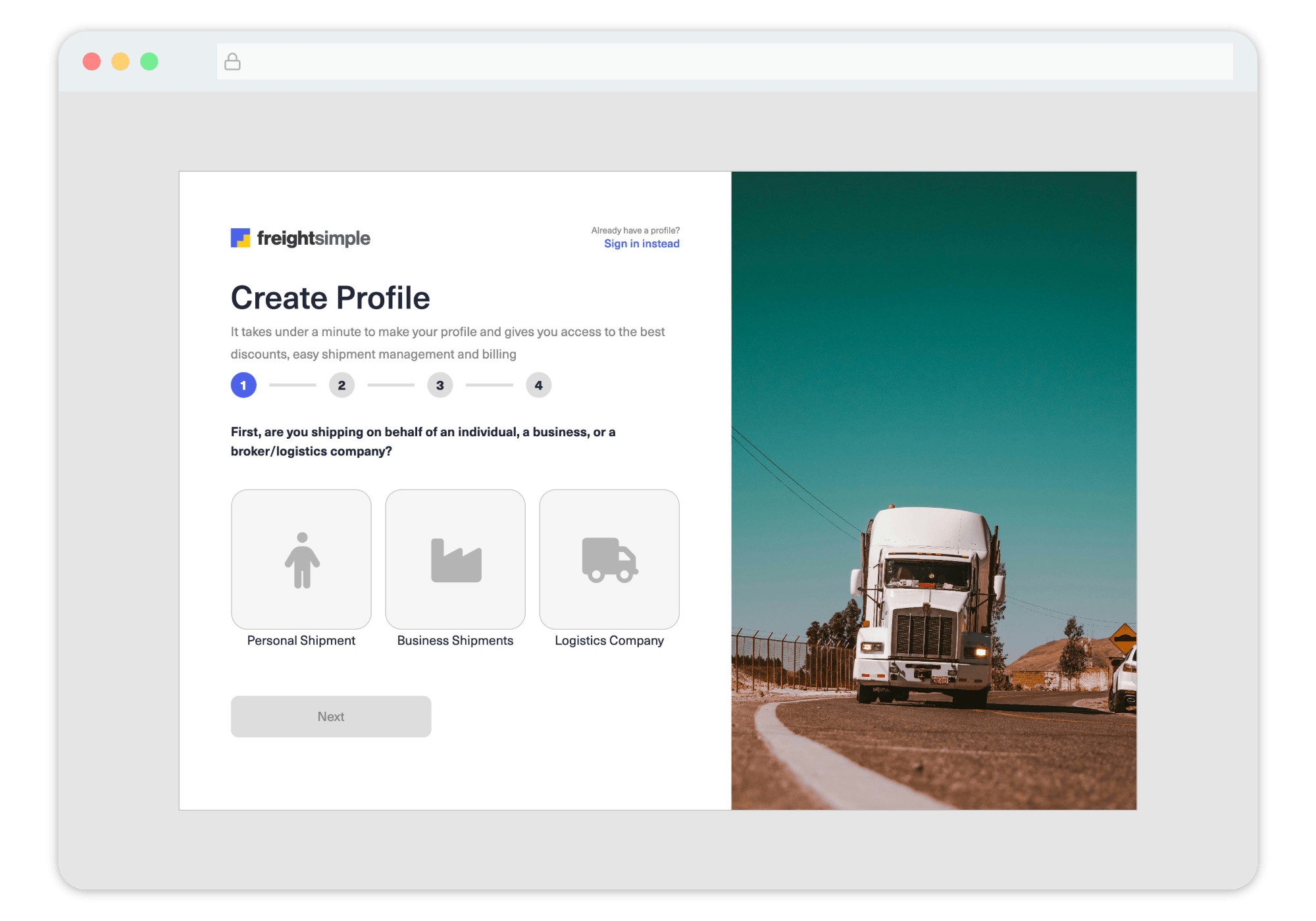 Visit the FreightSimple sign-up page.