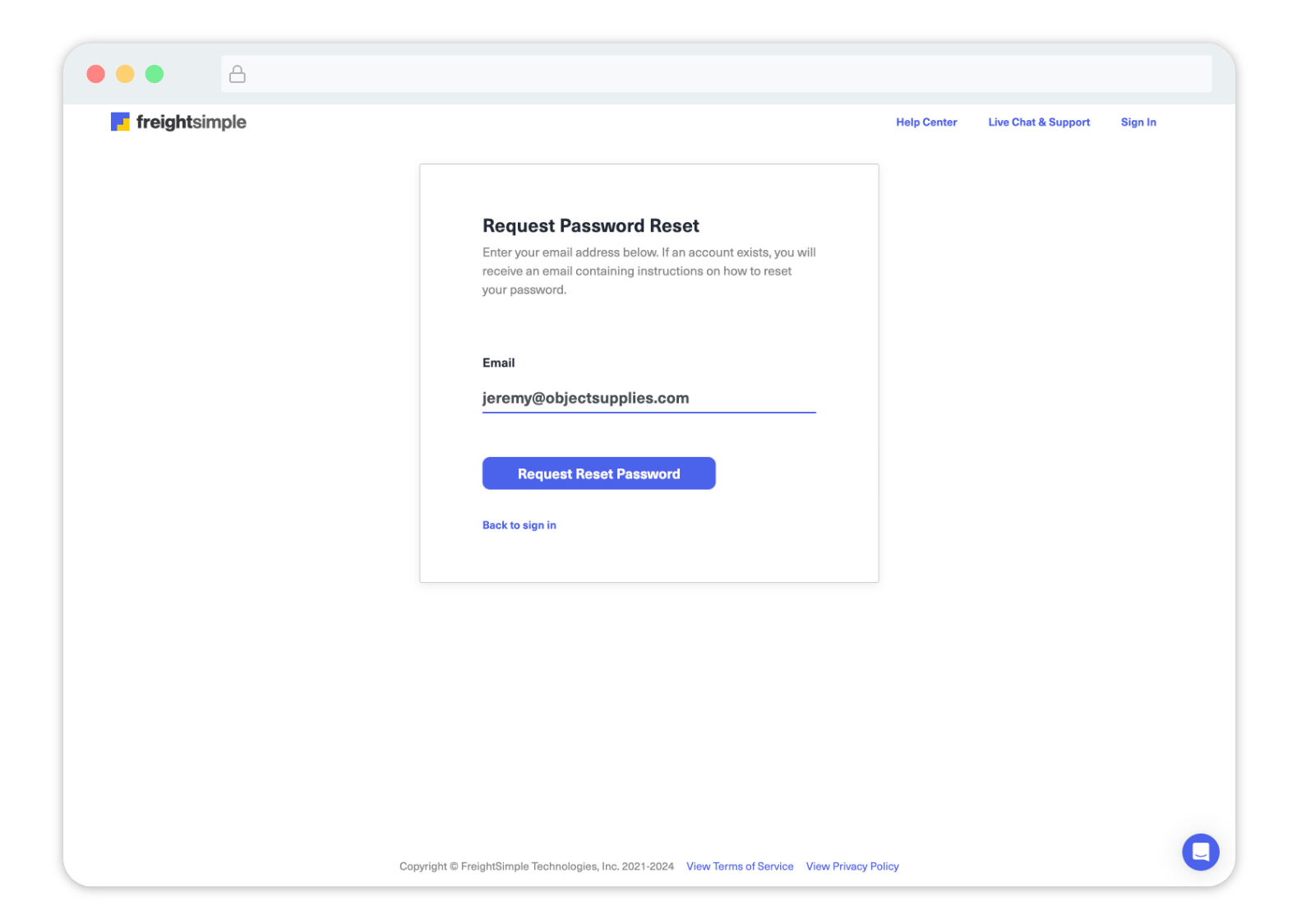 If you have forgotten the password to your FreightSimple account, you can easily reset it.